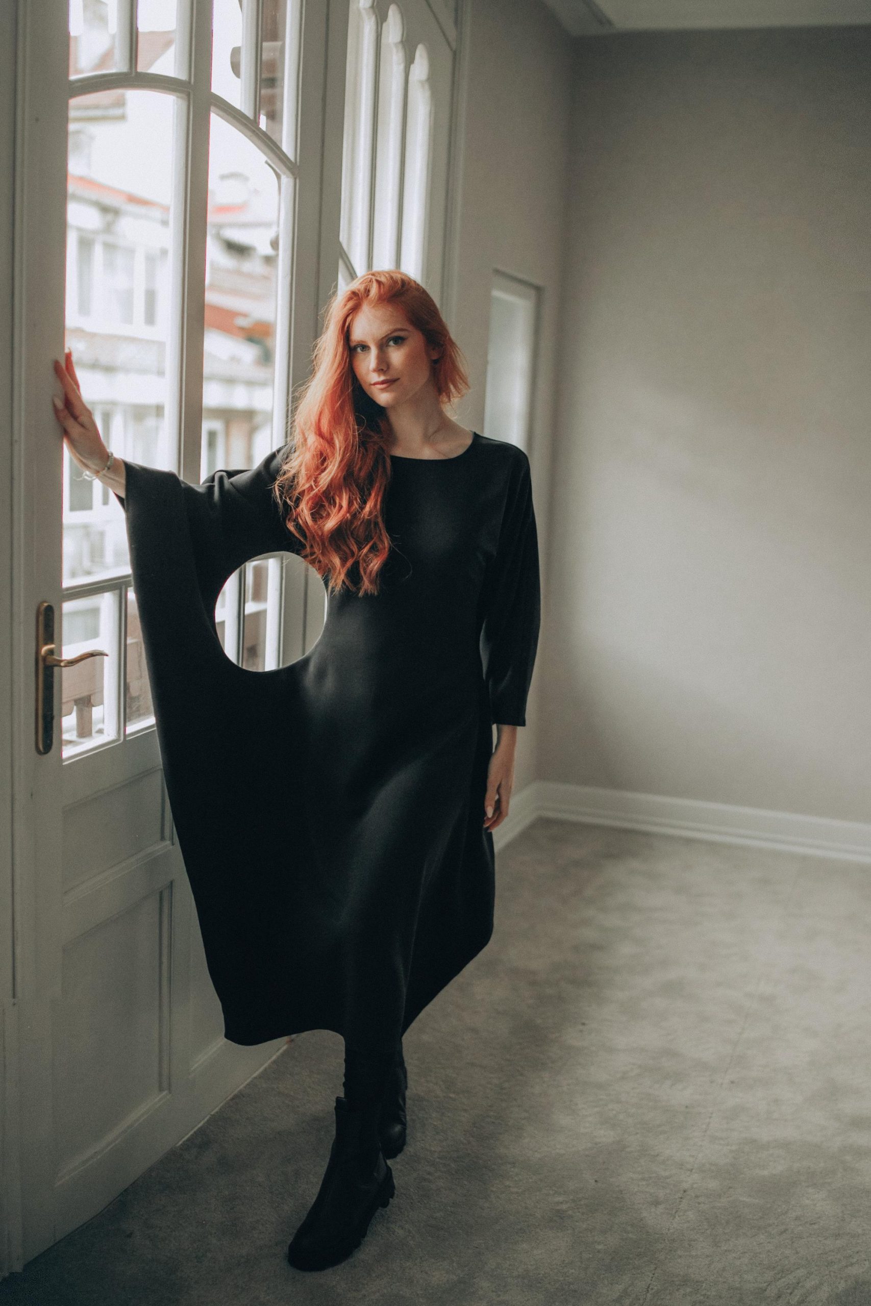 Perfect for both casual and special occasions, this dress combines minimalist sophistication with a relaxed, feminine feel.