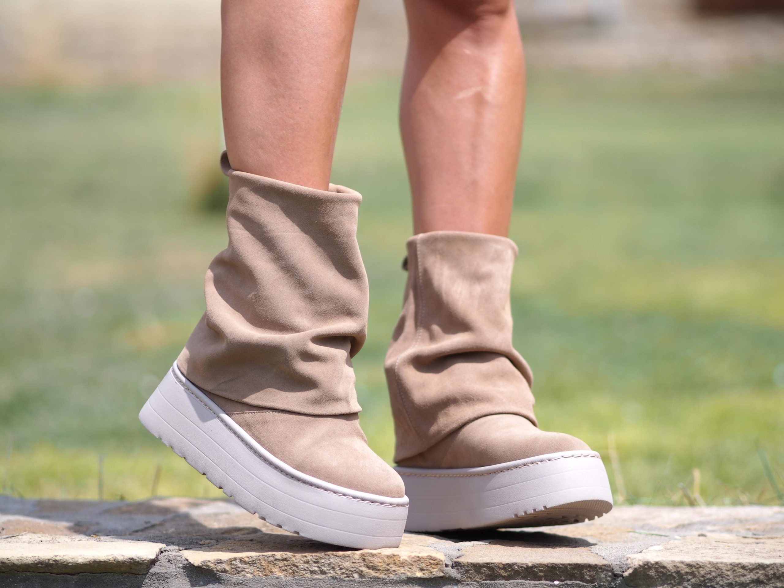 Handmade Leather Platform Boots Beige Color | Soft, Stylish & Comfortable