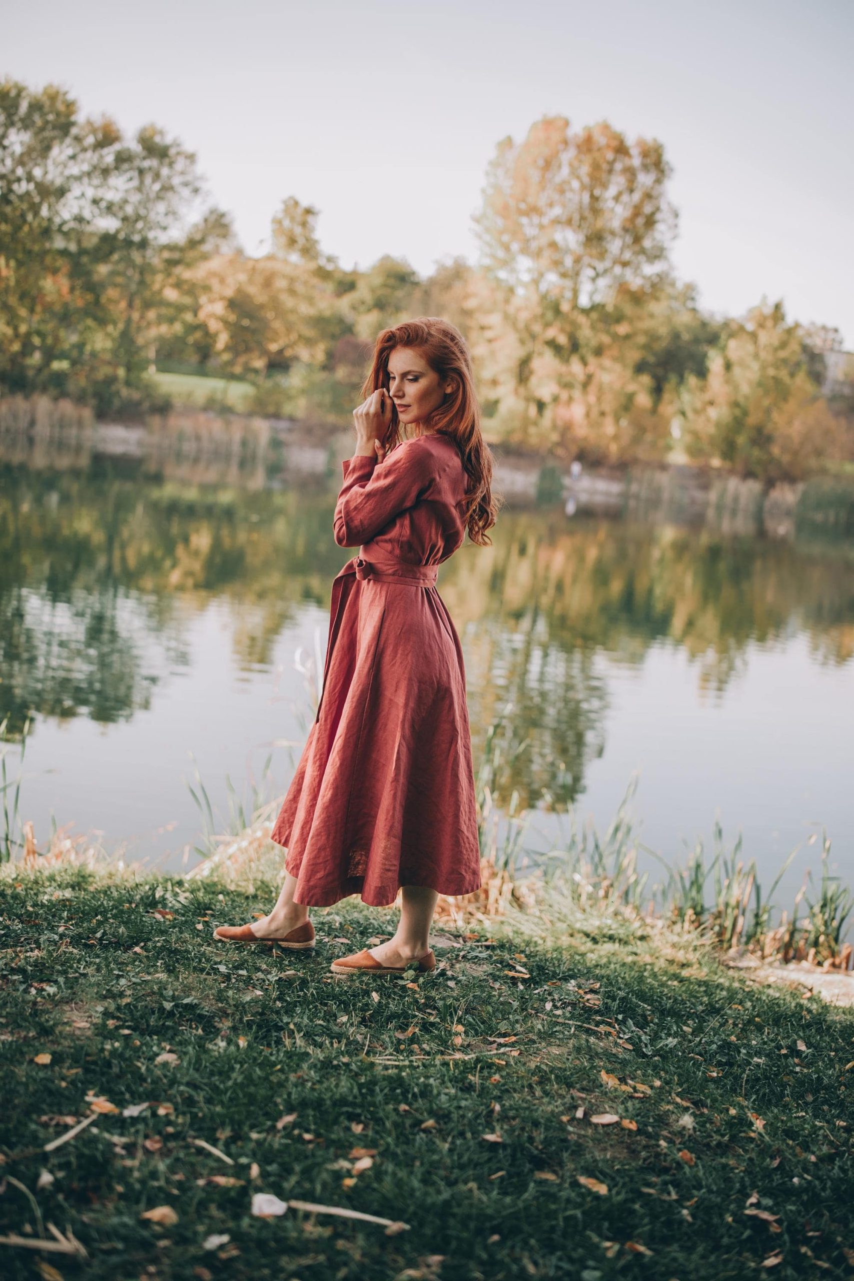 Timeless elegance in its most graceful form. We would like to present you this A-line midi linen dress with an elegant tie waist and a V-neck collar. Made of 100% natural washed and soft heavyweight linen that has a thick texture and is perfect for the chilly weather. Available to order in multiple classic colors, this dress is here to serve you for many seasons to come.