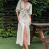 Linen Dress, Elegant Linen Dress, Deep V neck Linen Dresses, Linen Midi Dress, Button front Dress, Long Linen Dresses, Summer Dress, Linen Clothing for Women
