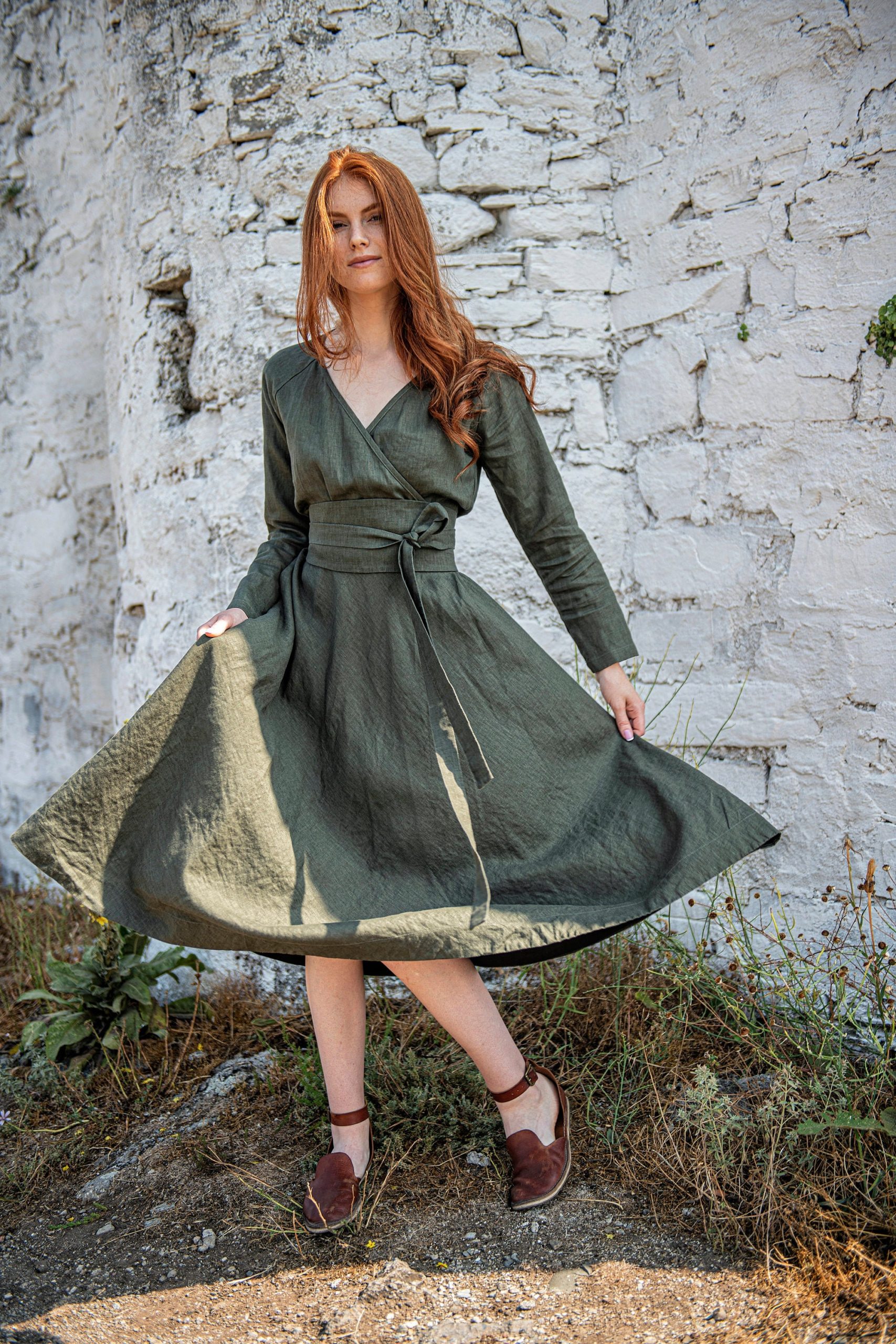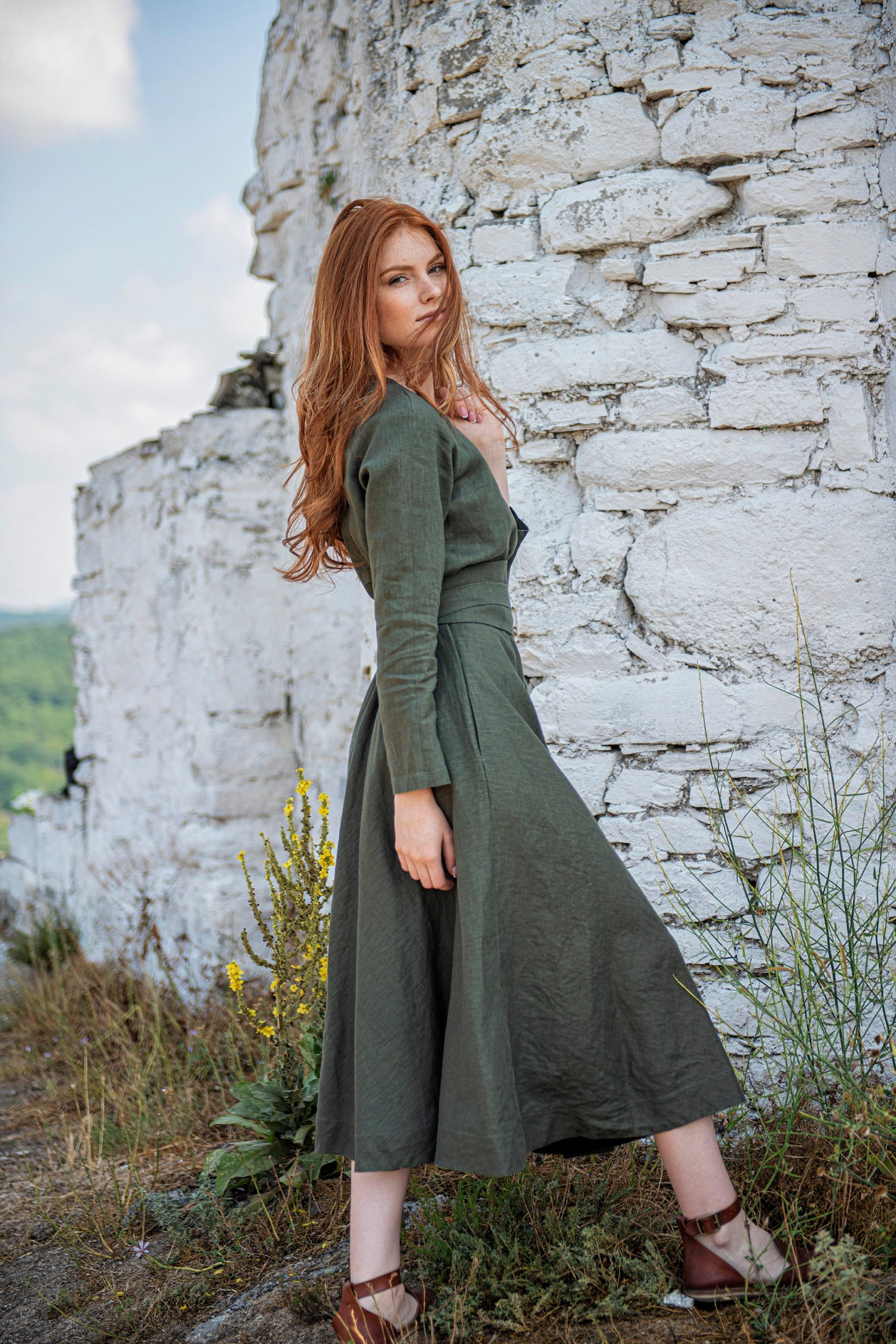 Timeless elegance in its most graceful form. We would like to present you this A-line midi linen dress with an elegant tie waist and a V-neck collar. Made of 100% natural washed and soft heavyweight linen that has a thick texture and is perfect for the chilly weather. Available to order in multiple classic colors, this dress is here to serve you for many seasons to come.