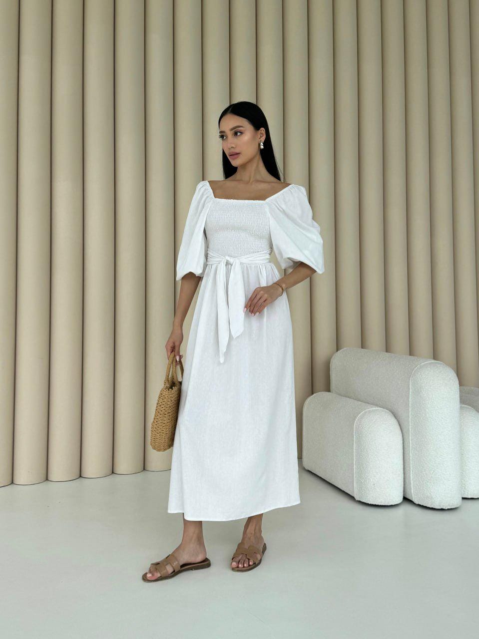 A designer linen dress that can be worn in two variations – you need a neckline or an open back – choose according to your mood, and the dress will adjust.