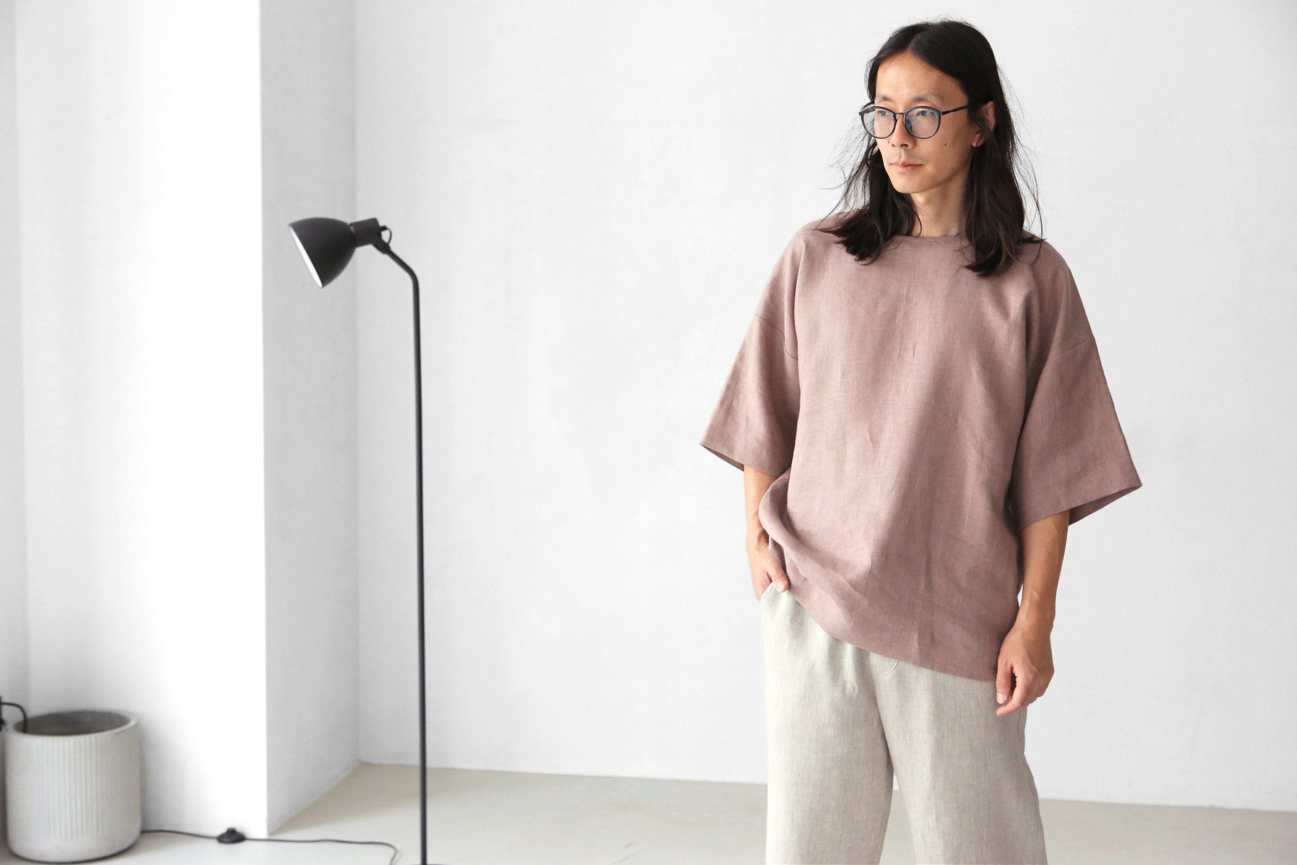 Mens Linen T Shirt Oversize Wide Sleeve For nan