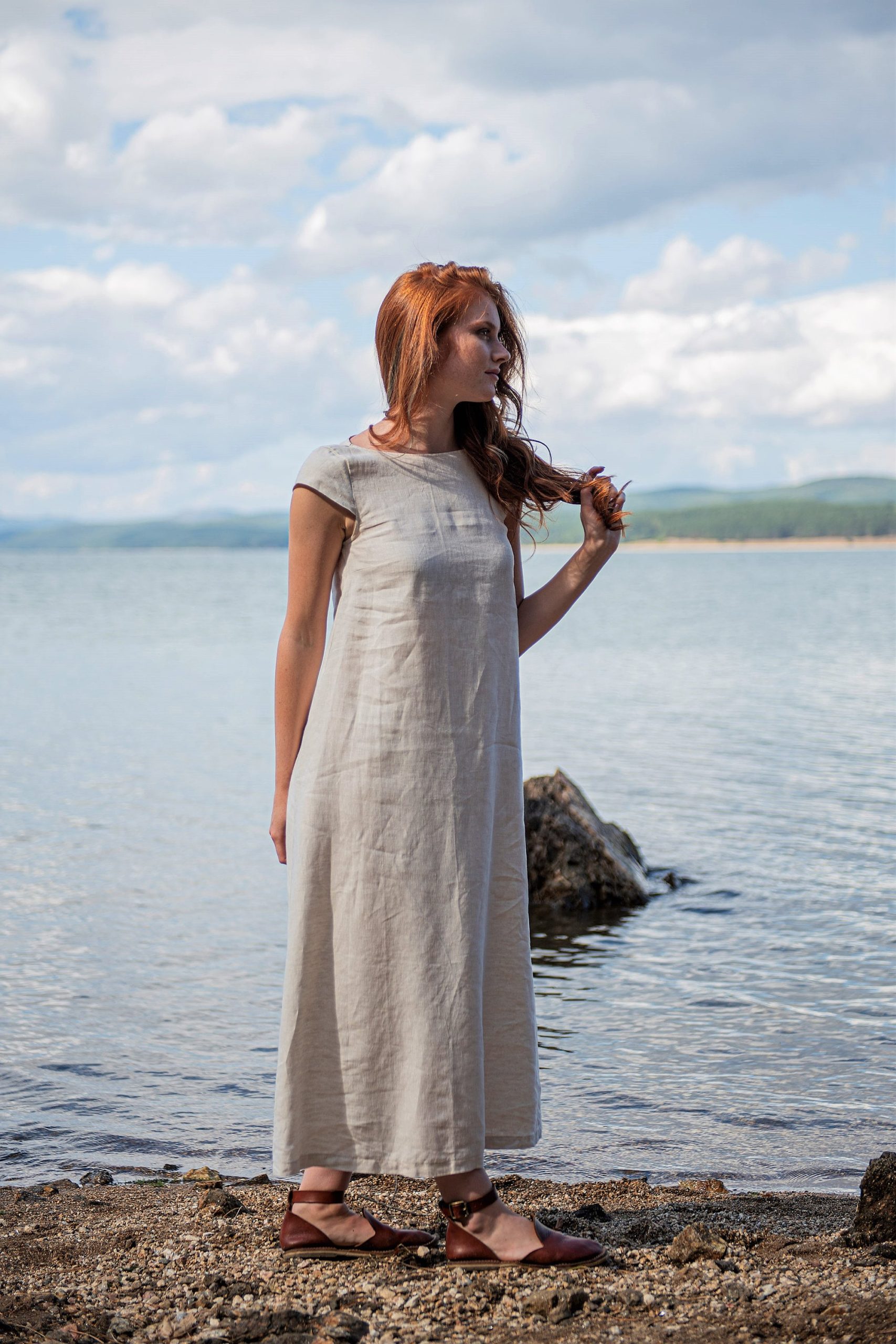 Be the first to review “Natural Linen Dress Midi With Pockets Kaftan Summer”