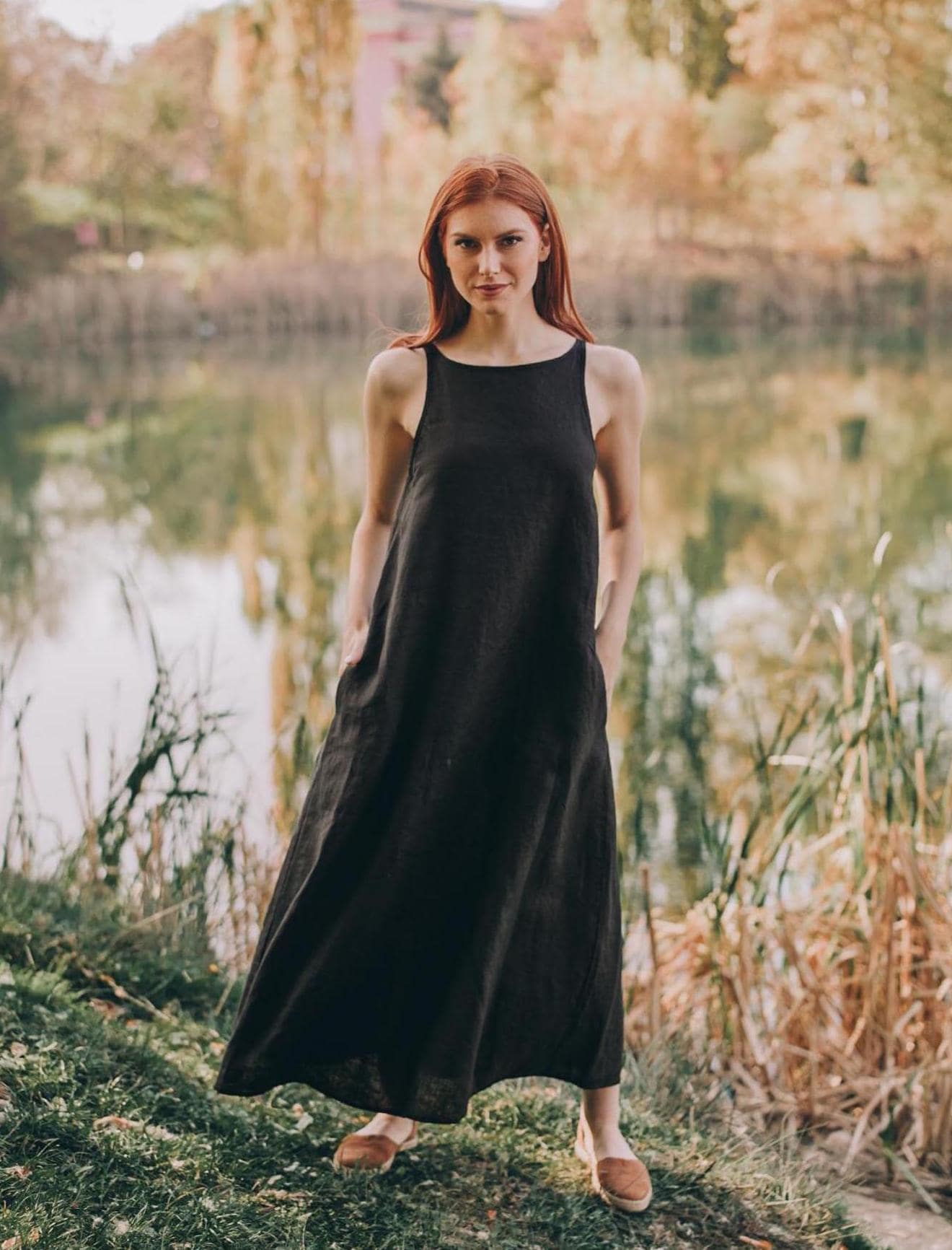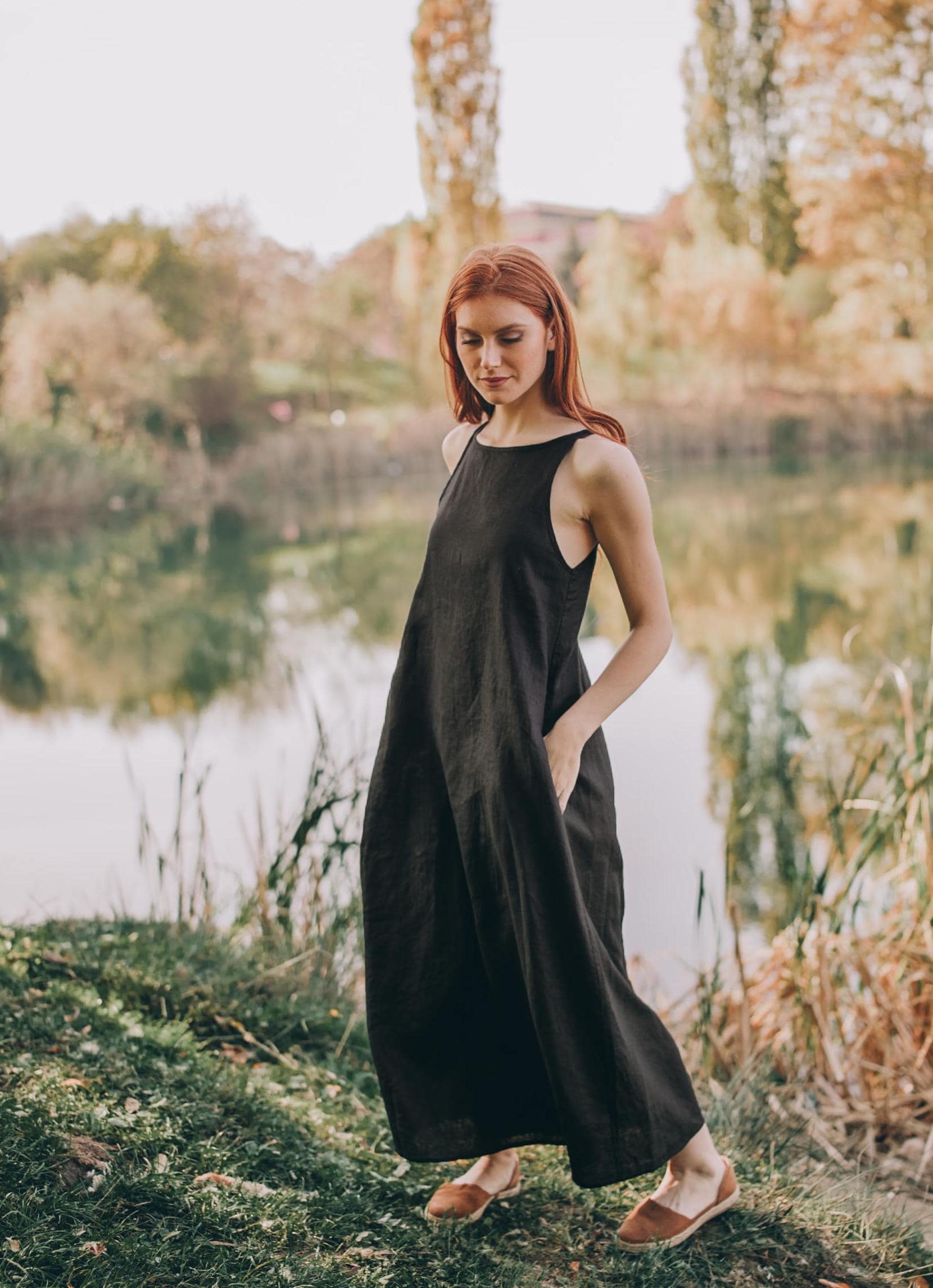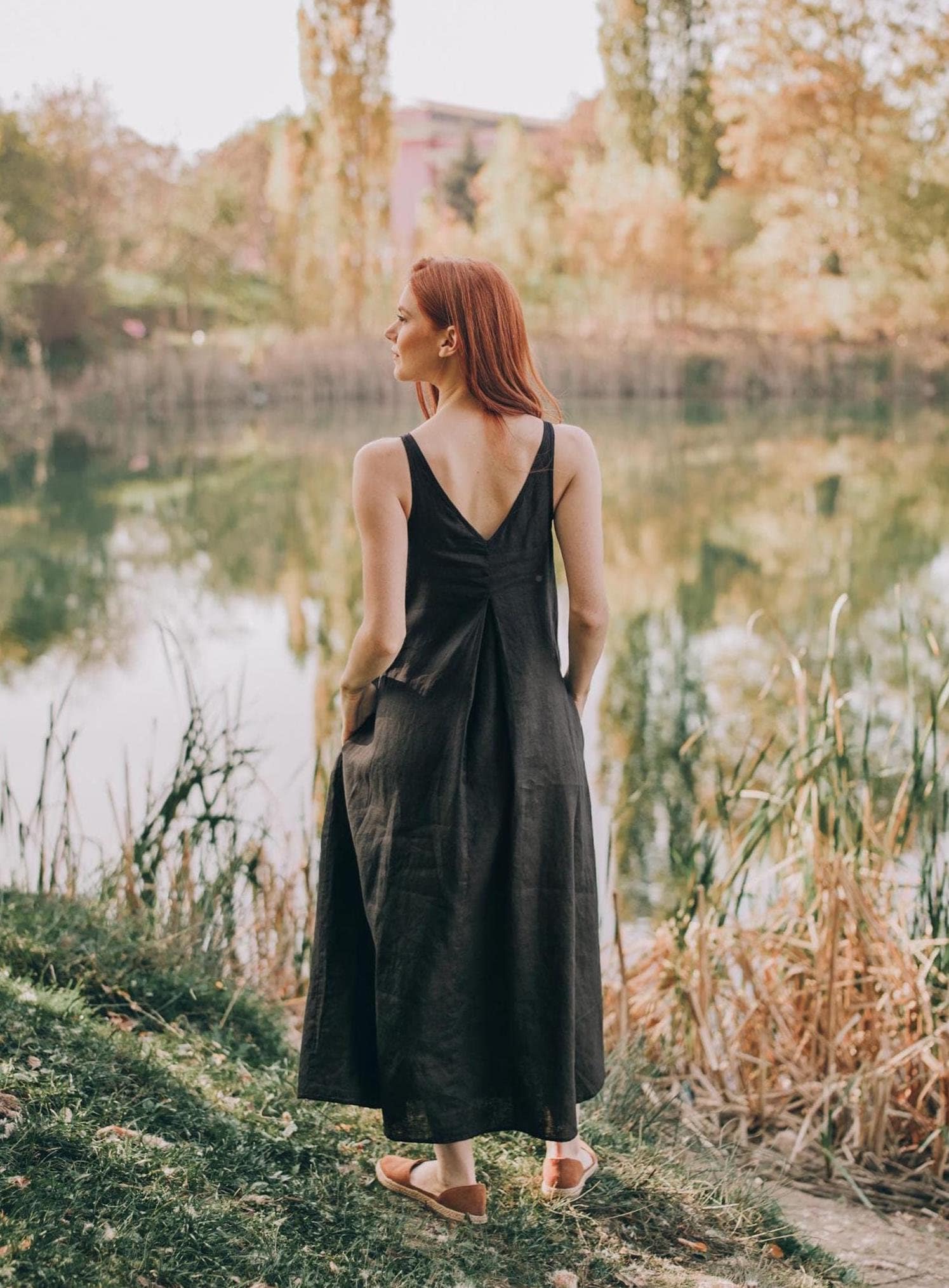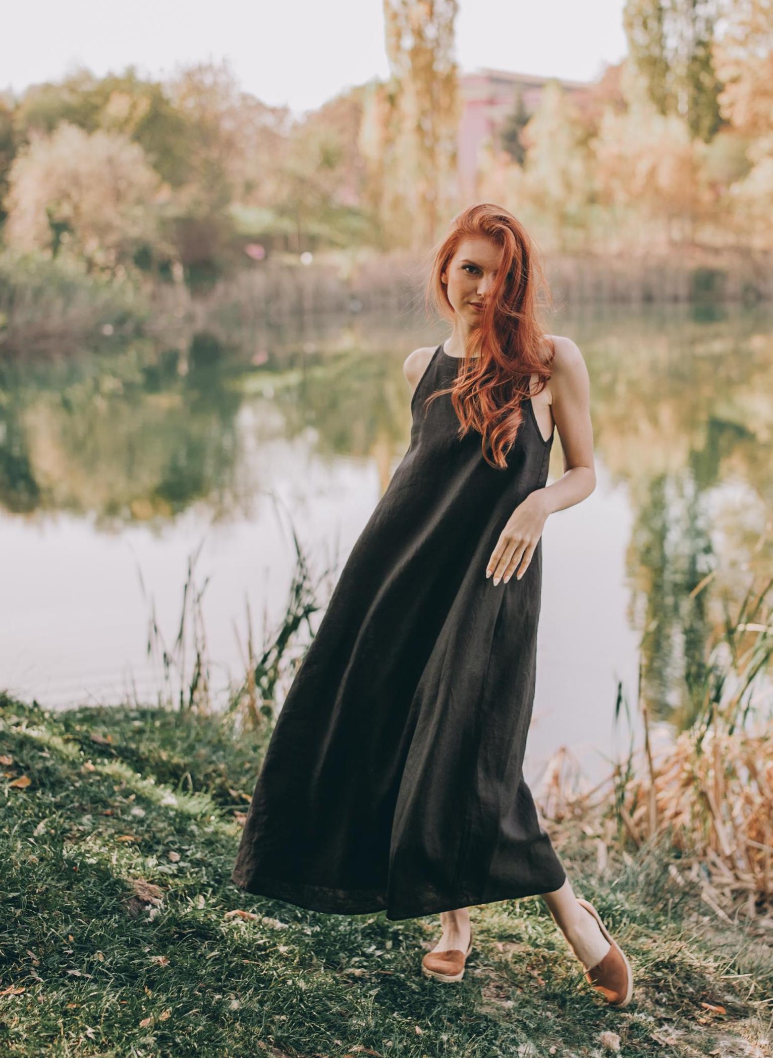 Reversible Black Linen Midi Dress: Sleeveless Summer Cami