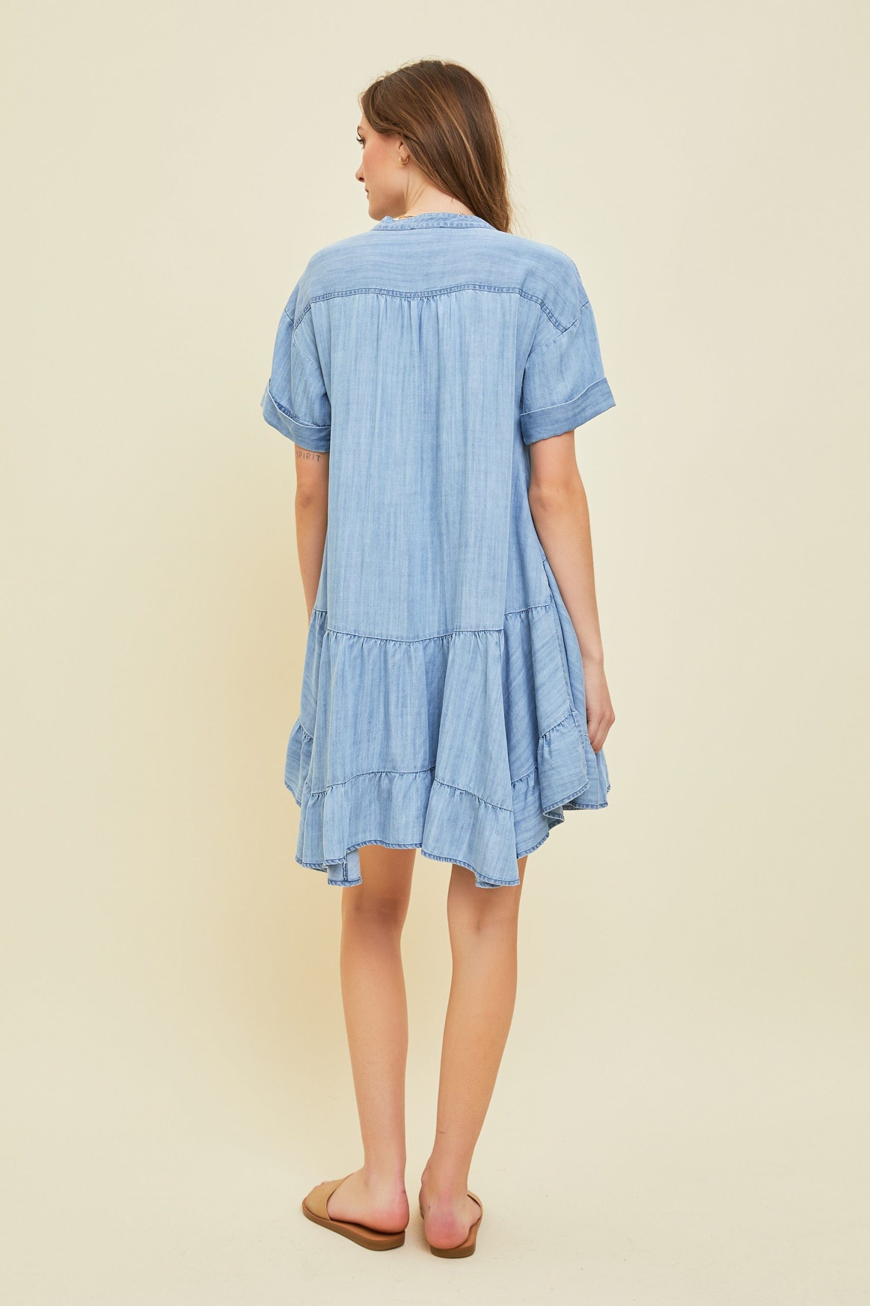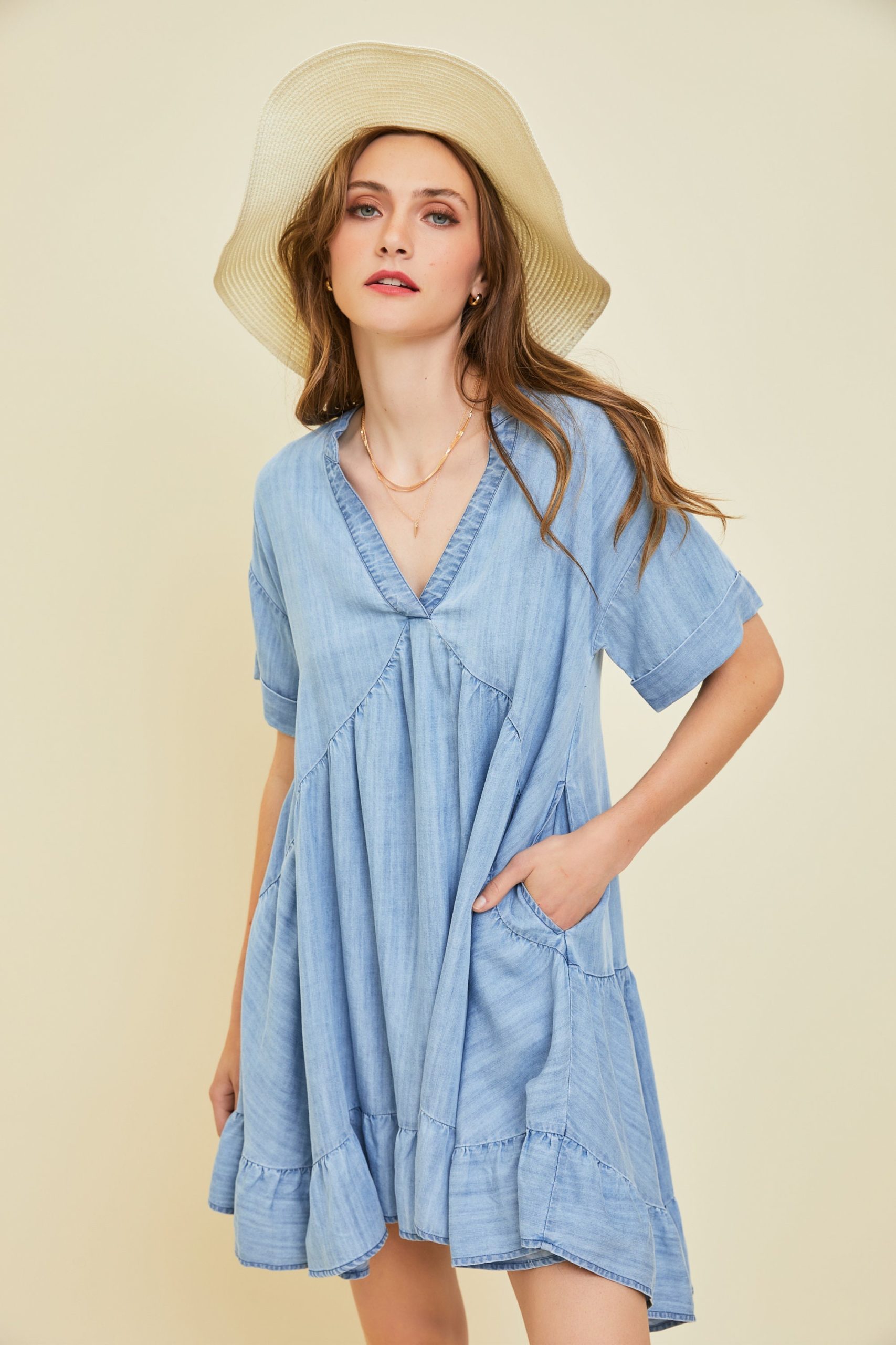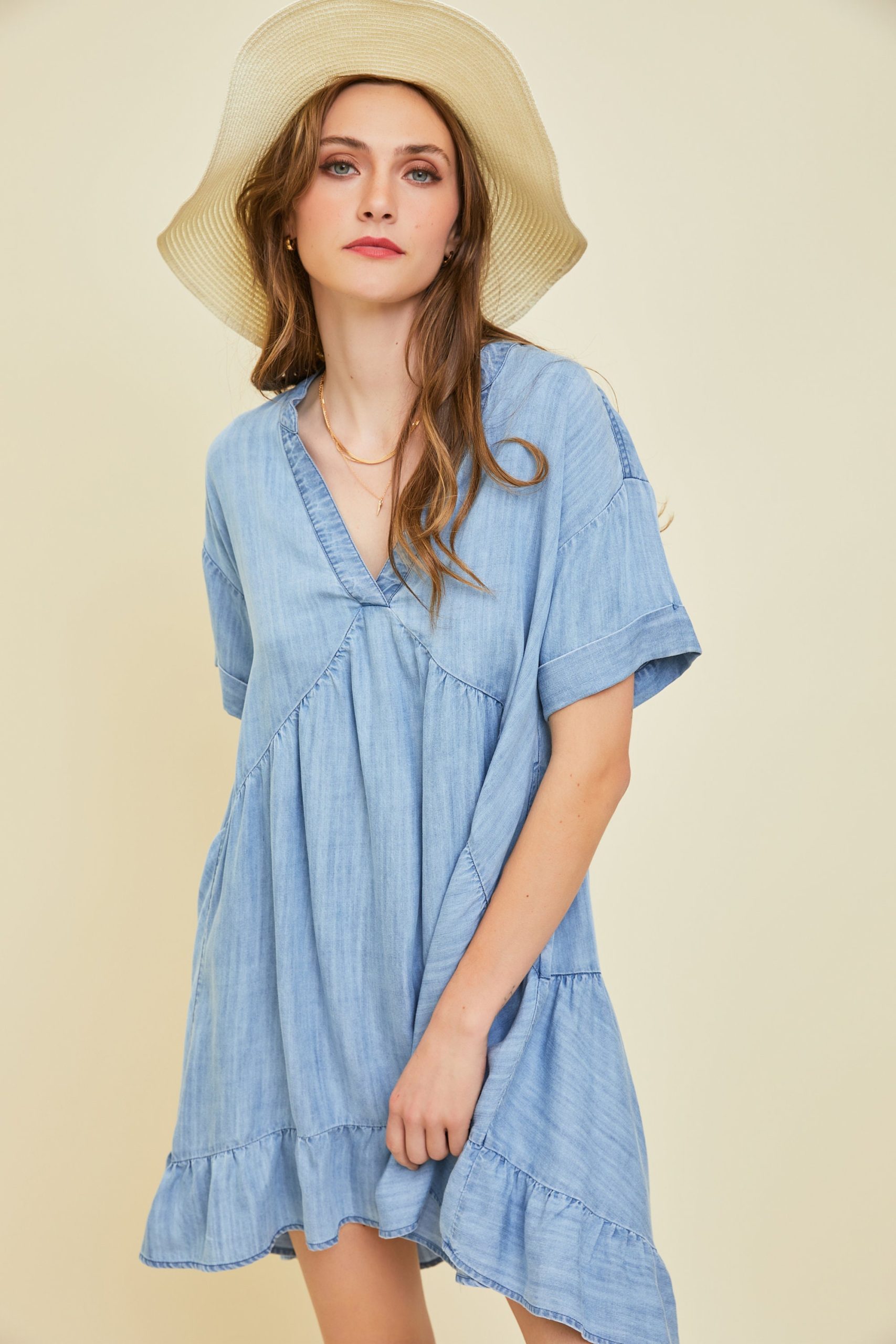 Be the first to review “Washed Denim Chambray Mini Dress Flowy A Line”